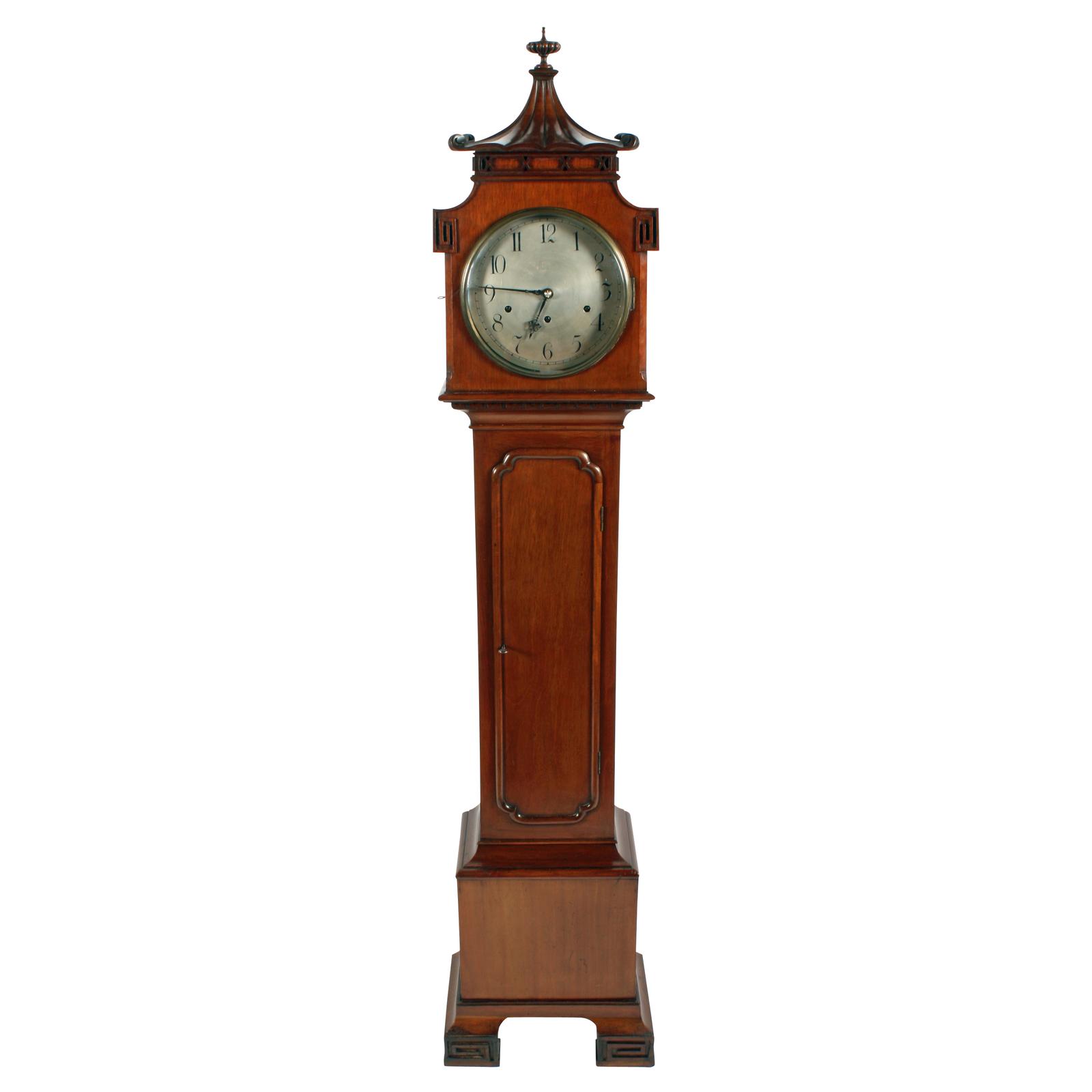 Mahogany Cased Chinoiserie Style Chiming Grandmother Clock
