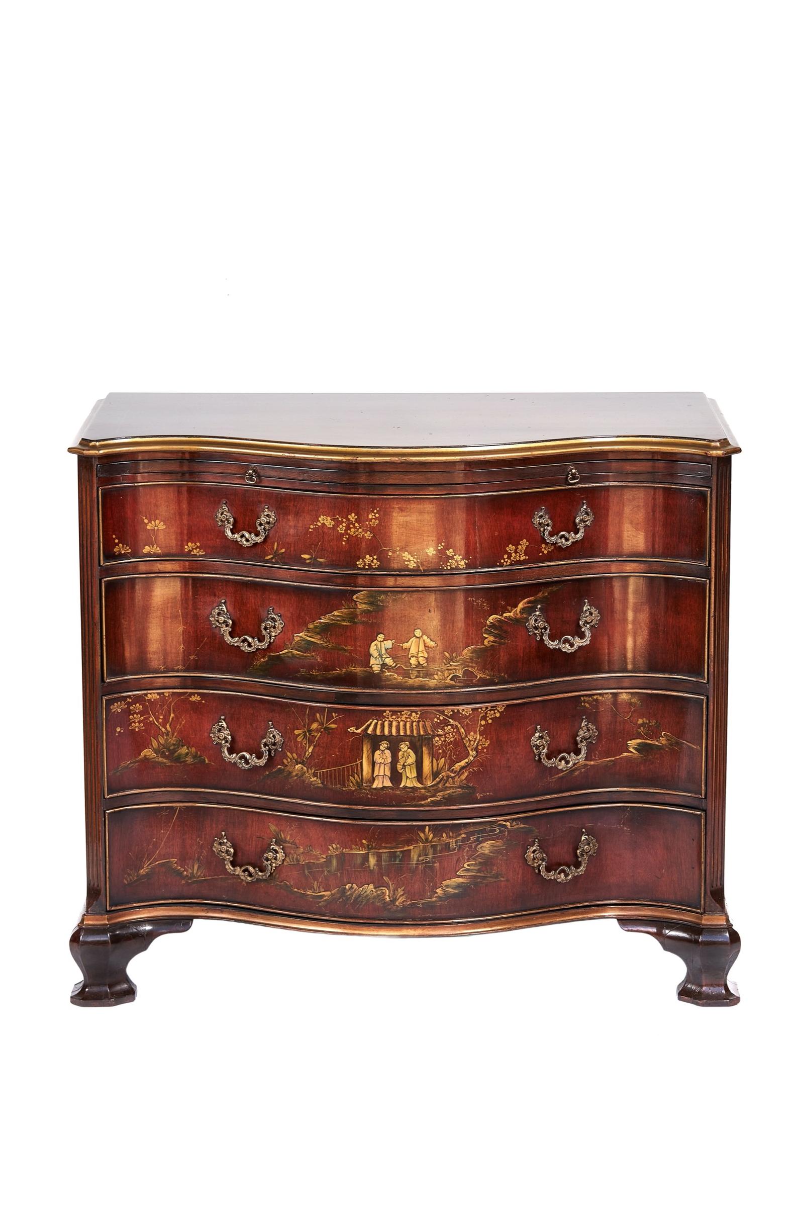 Mahogany Chinoiserie Serpentine 4 Drawer Chest with Slide c.1920