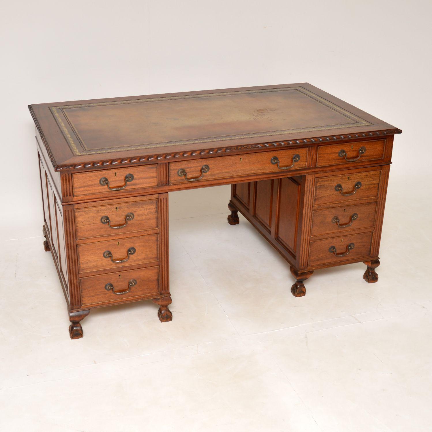 Mahogany Chippendale Style Pedestal Desk c.1930 (1 of 10)