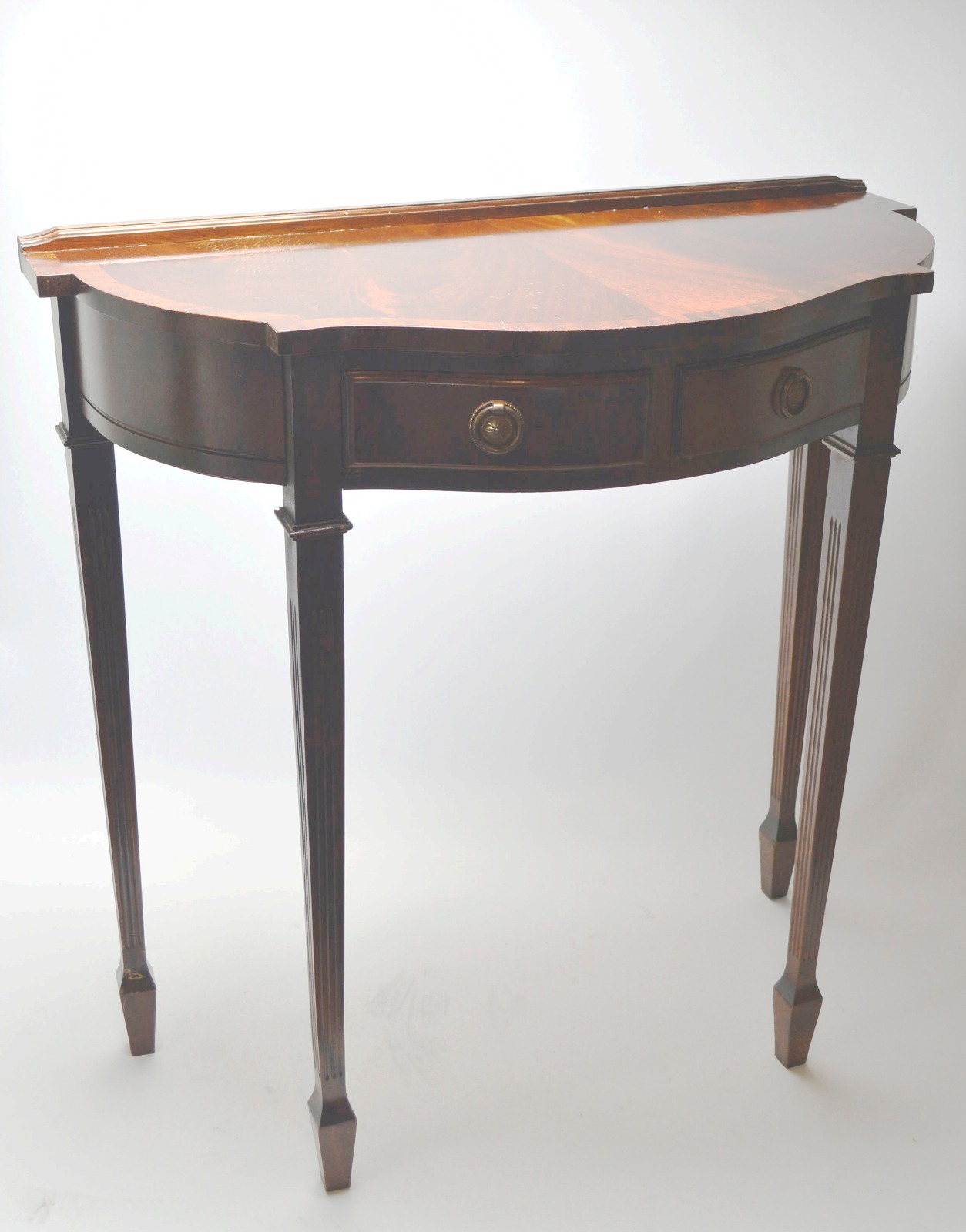 Mahogany Demi-Lune Serpentine Front Two Drawer Console Table