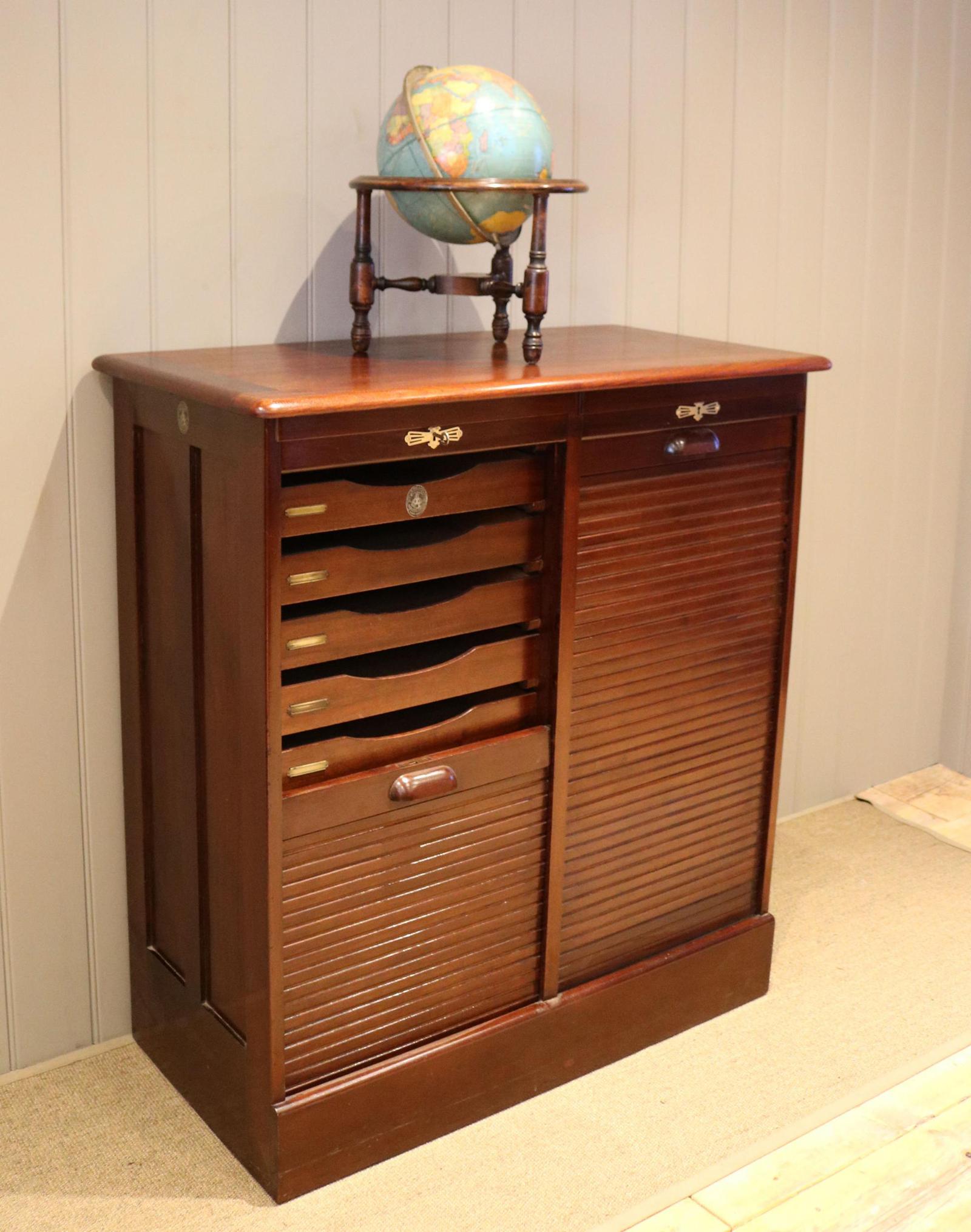 Mahogany Double Tambour Front Filing Cabinet