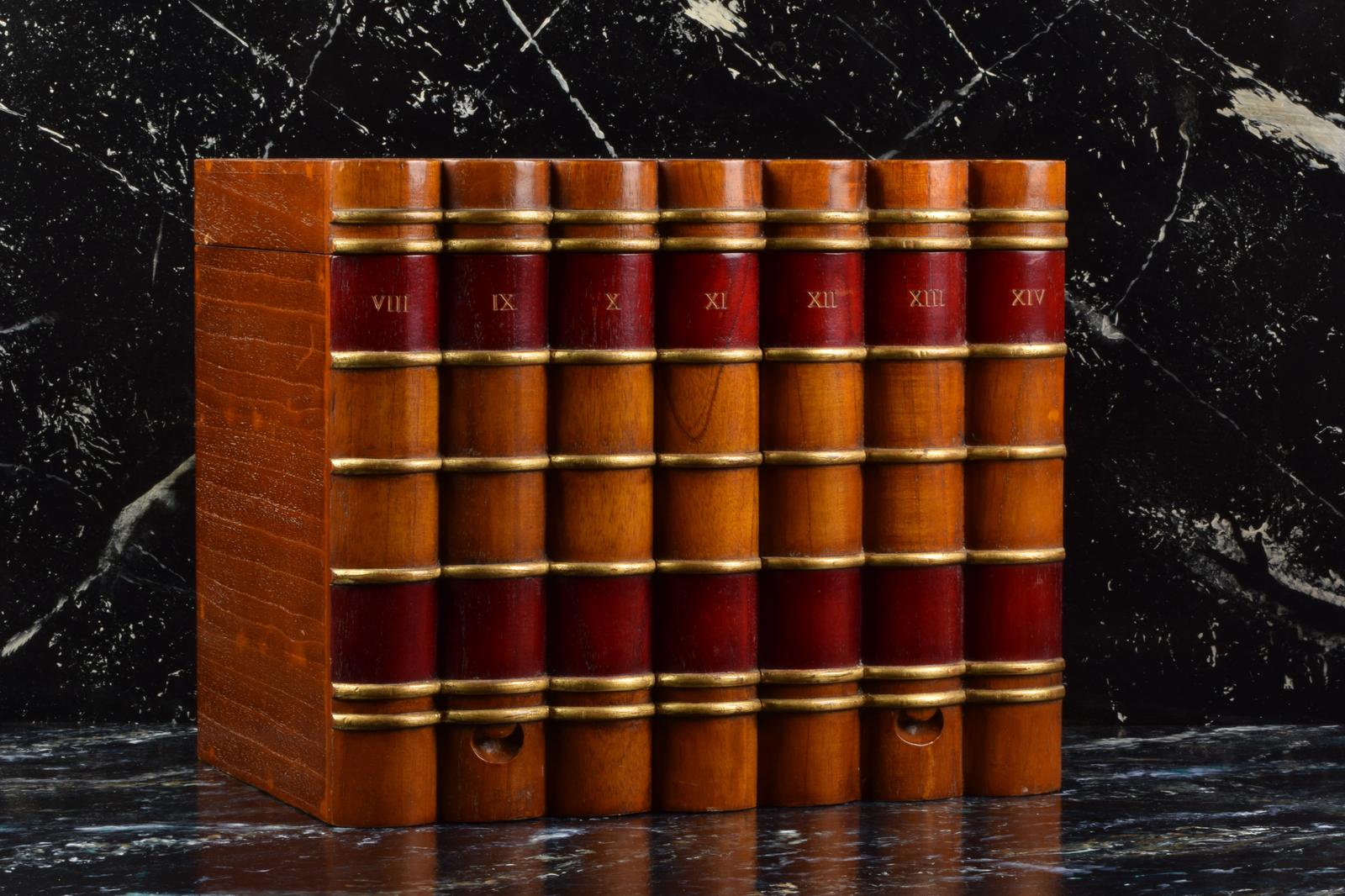 Mahogany Faux Book Storage with Painted & Gilt Spines