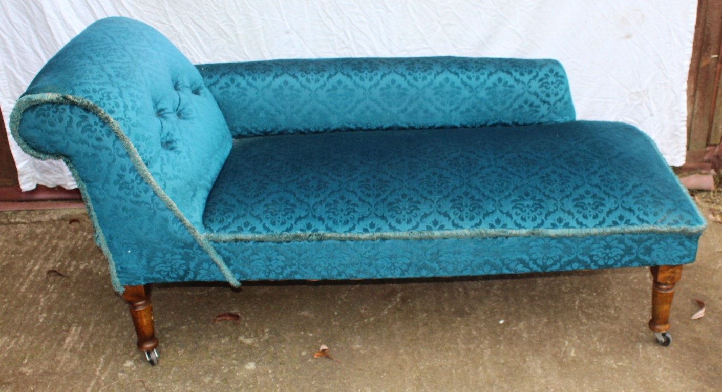 Mahogany Framed Upholstered Chaise in Blue c.1910