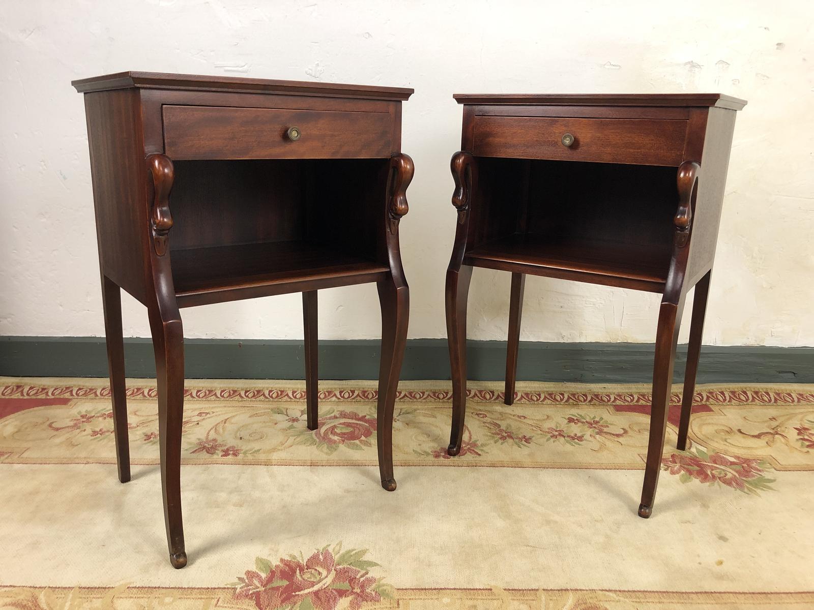 Mahogany French Bedside Tables Cabinets with Swan Neck