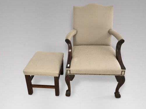 Mahogany Gainsborough Style Armchair with Cabriole Legs To Ball & Claw Feet & Foot Stool