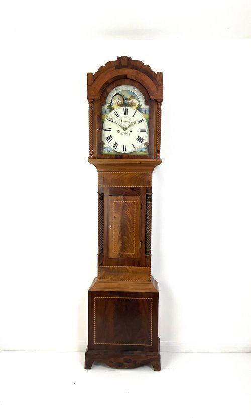 Mahogany Grandfather Longcase Clock Moon Phase Tunbridgeware Style Inlay