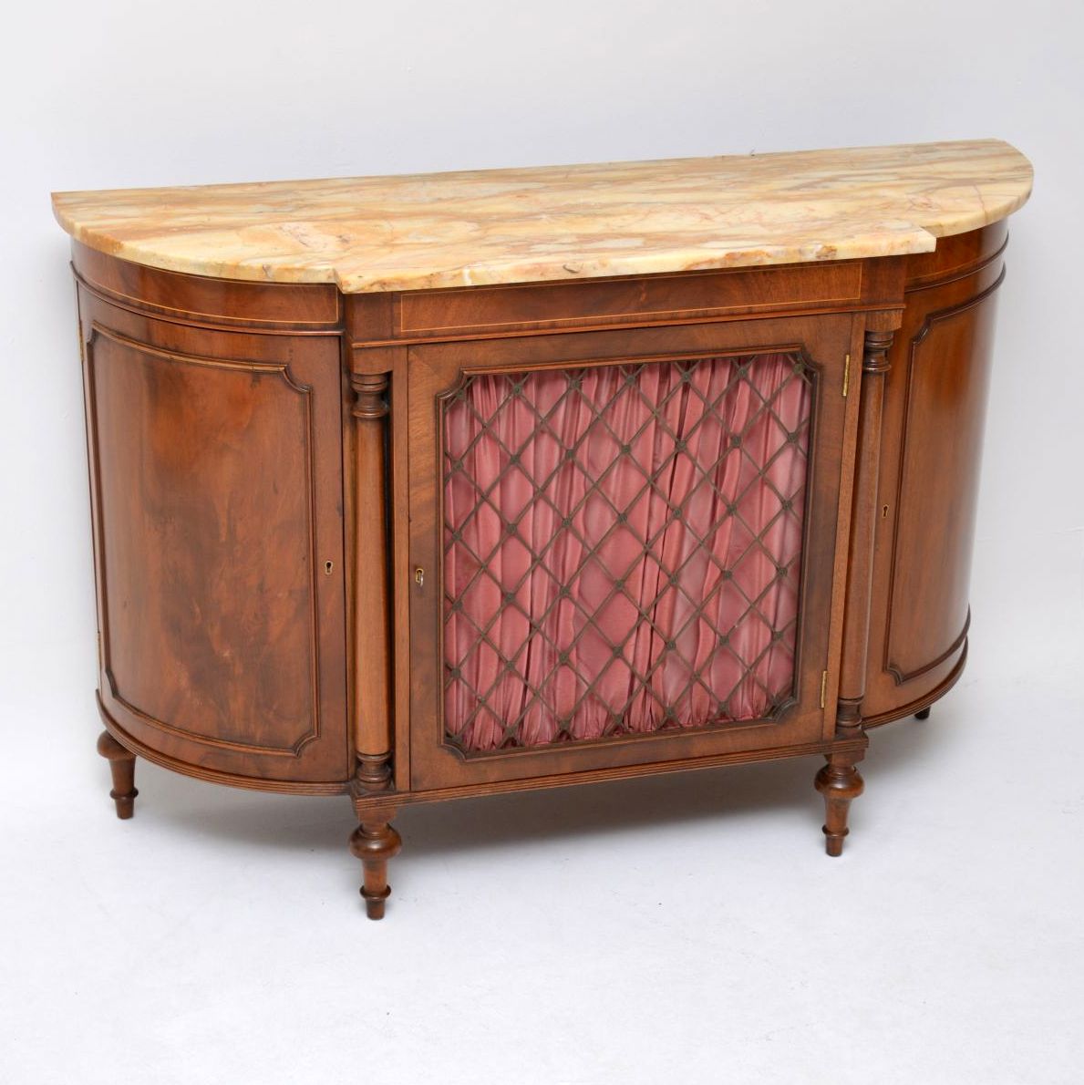 Mahogany Grill Front Marble Top Sideboard c.1930