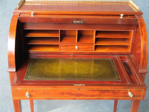 Mahogany & Inlaid Cylinder Top Desk c.1900