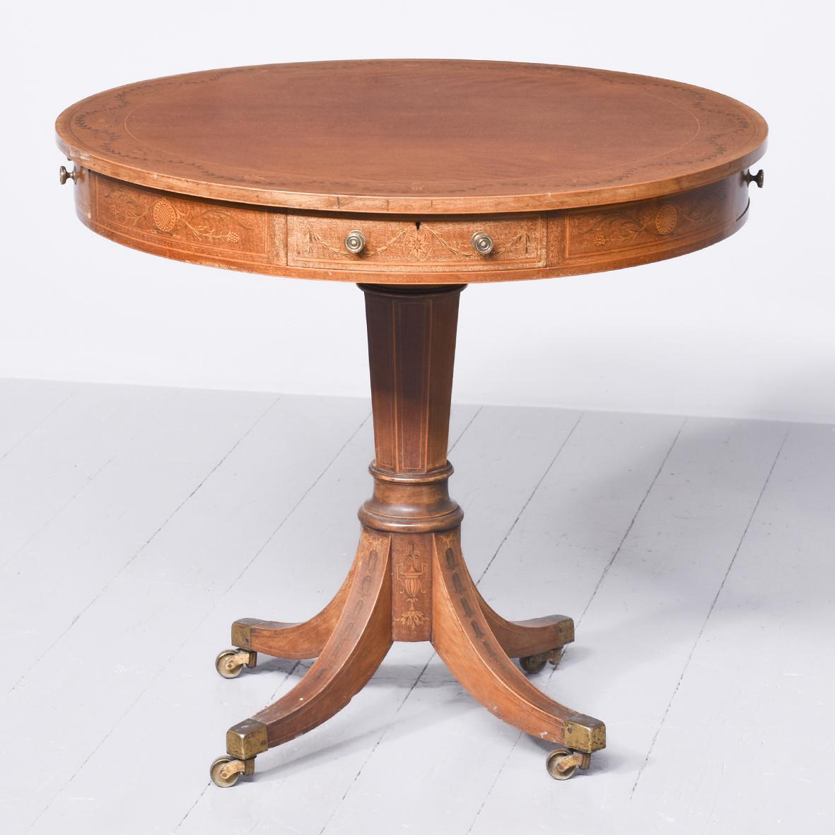 Mahogany & Inlaid Drum Table Stamped ‘James Shoolbred & Co’ (1 of 7)