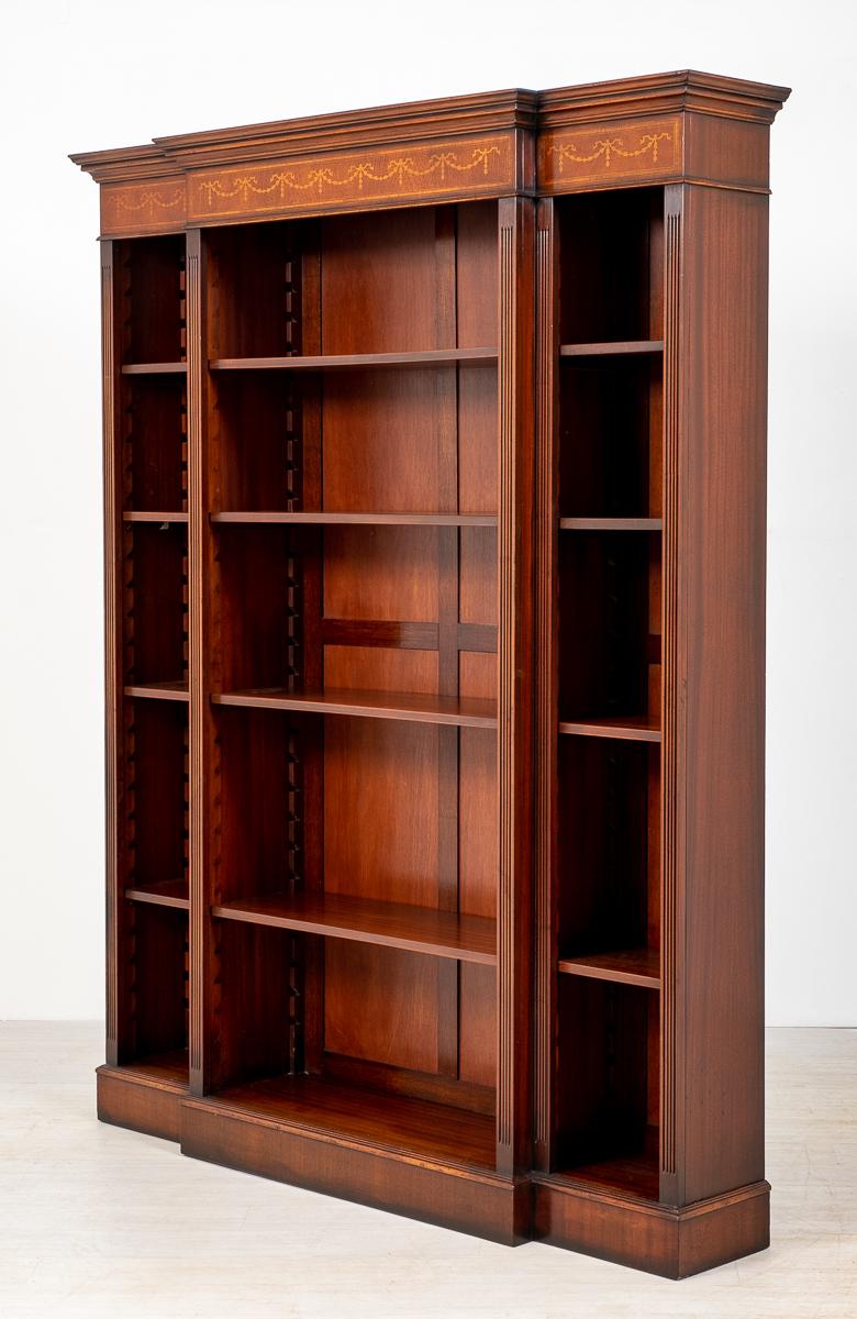 Mahogany Inlaid Open Breakfront Bookcase (1 of 5)