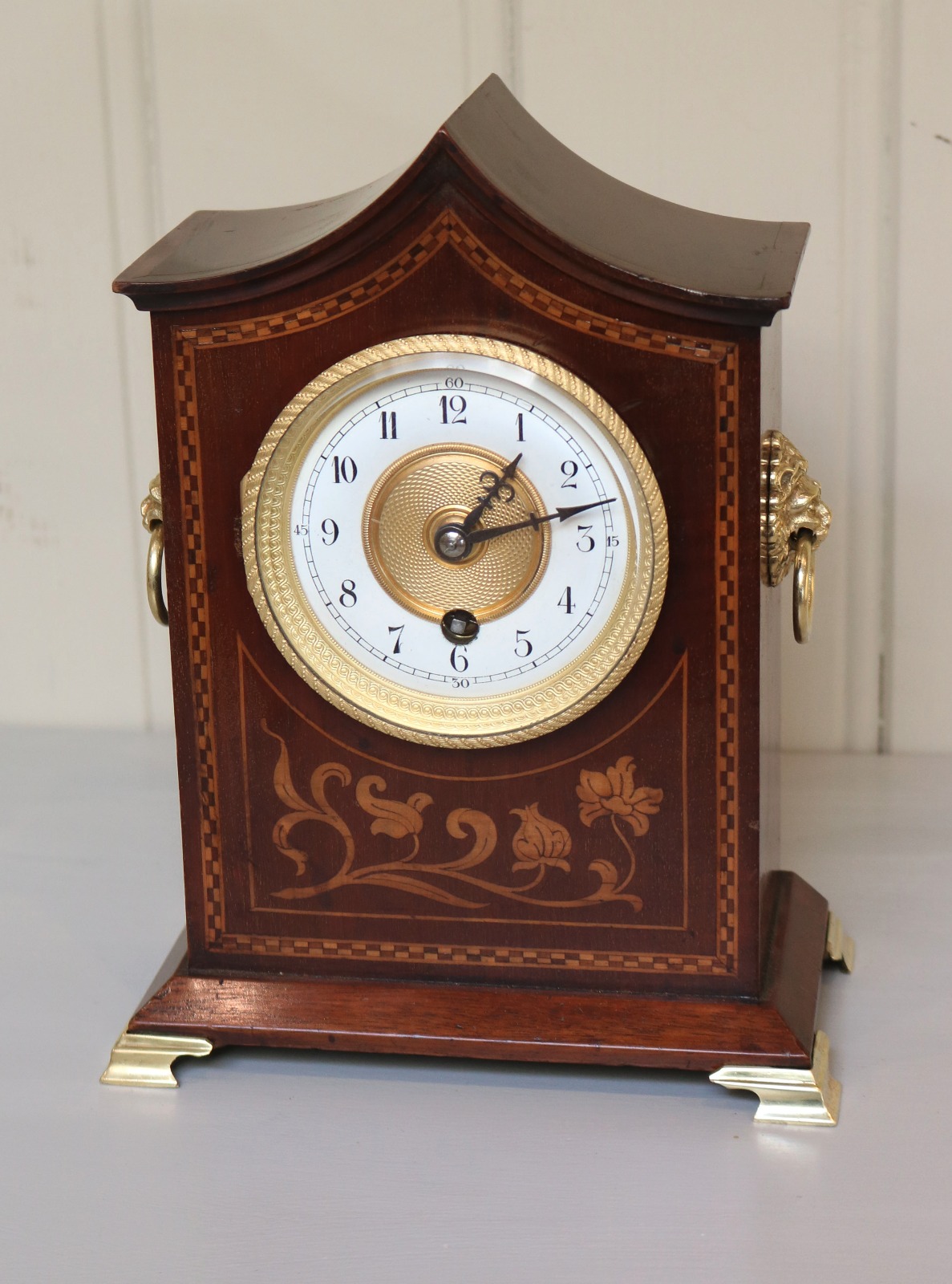 Mahogany & Inlay Timepiece Mantel Clock c.1900 (1 of 1)