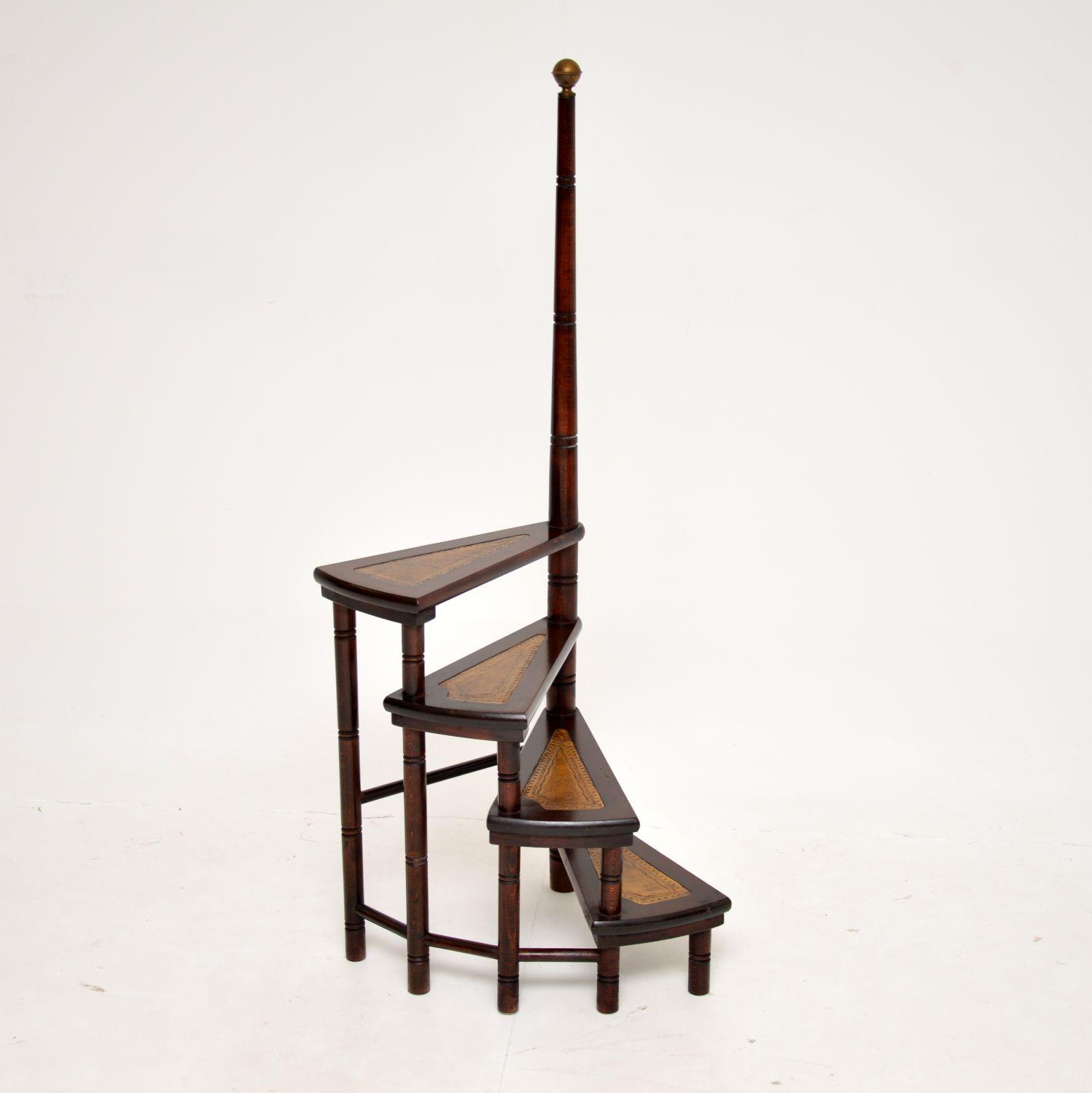Mahogany & Leather Library Steps