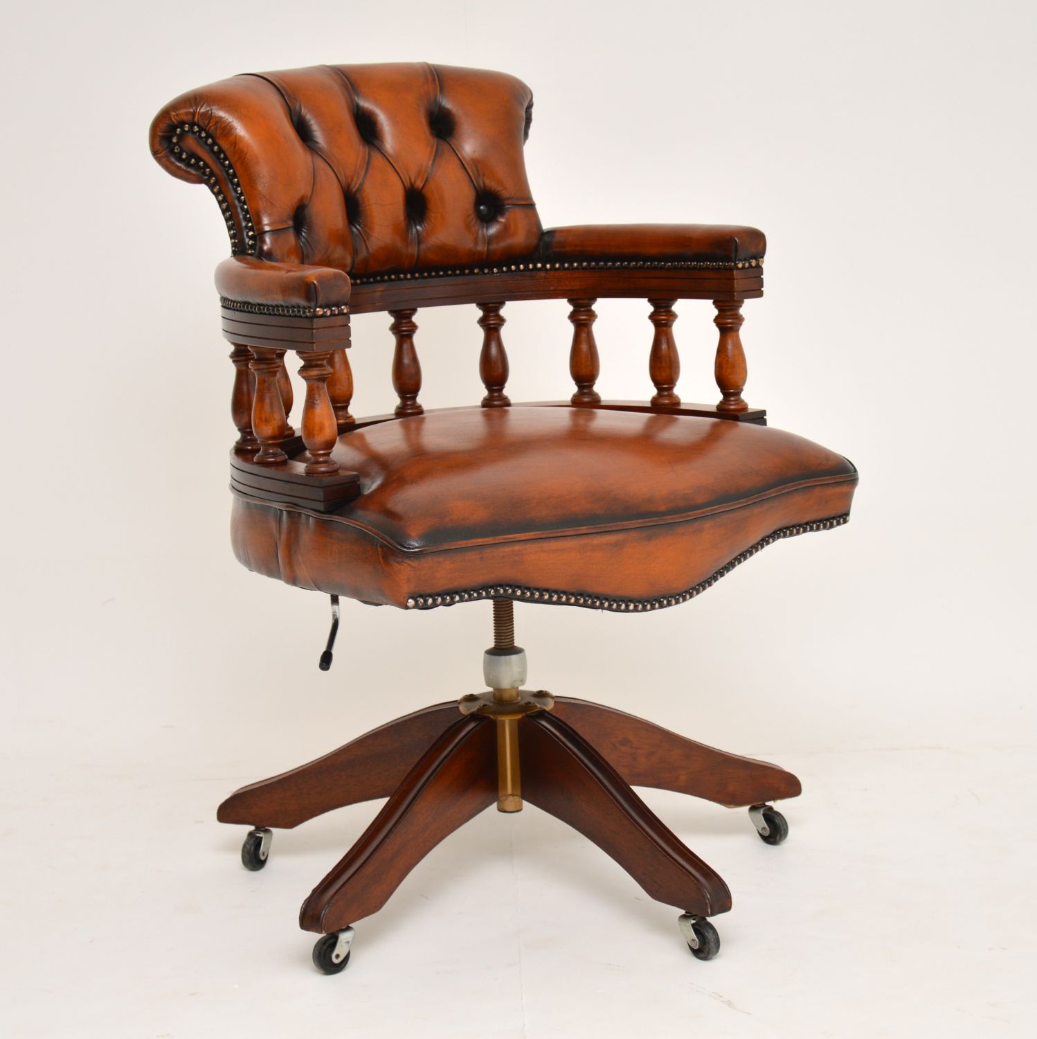 Mahogany & Leather Swivel Captains Desk Chair (1 of 10)