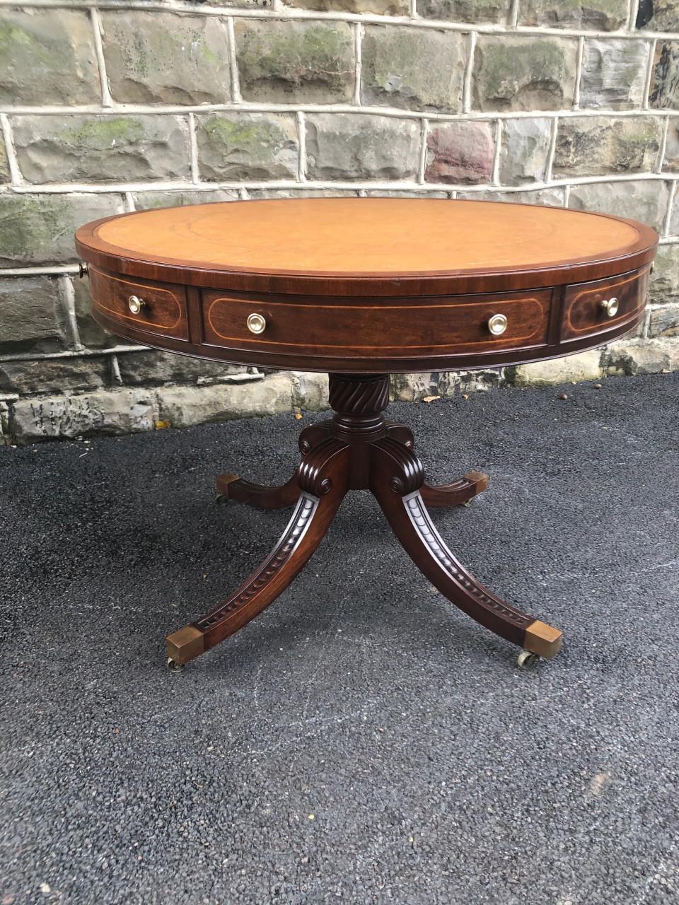 Mahogany Leather Top Drum Table