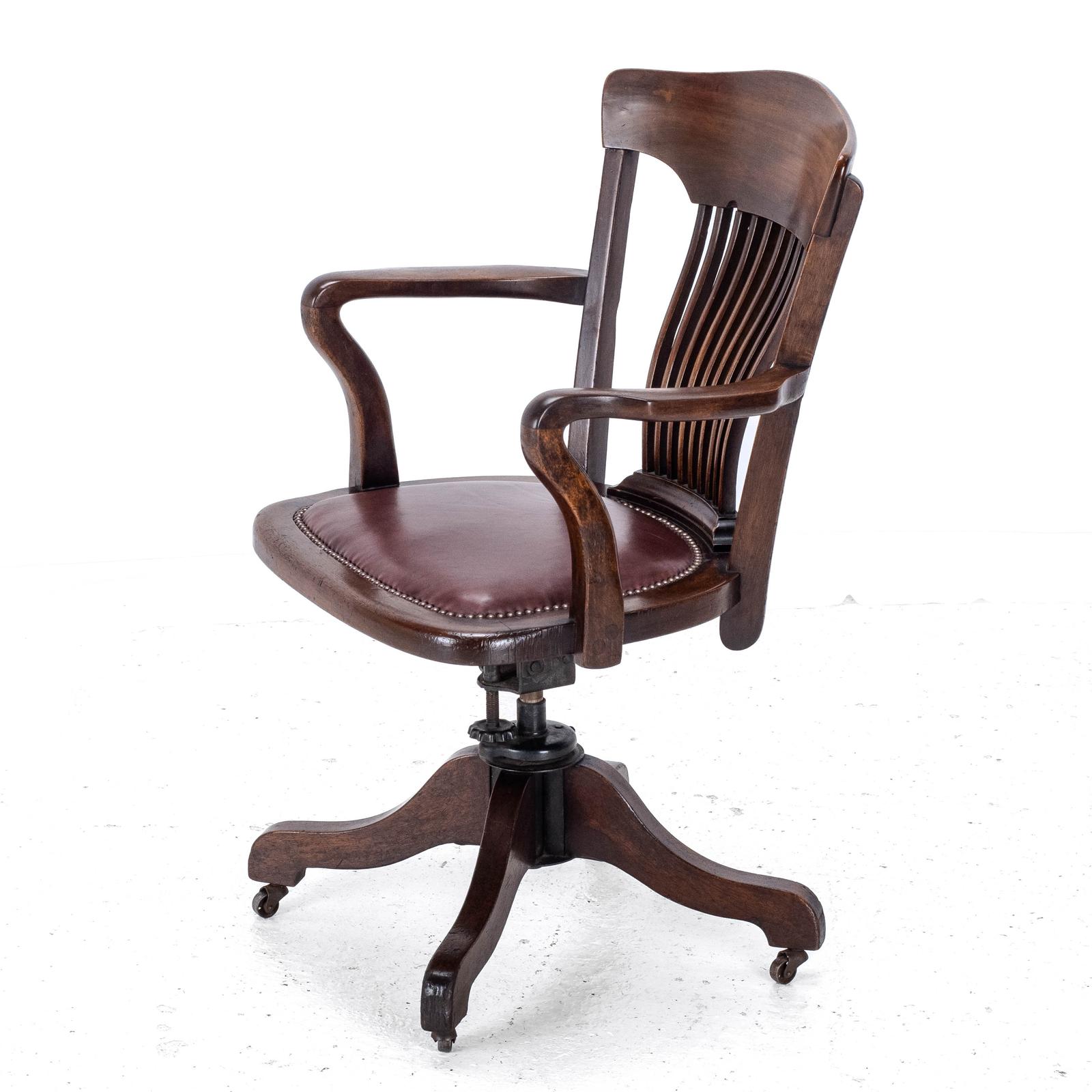 Mahogany Leather Upholstered Swivel Adjustable Desk Armchair c.1920