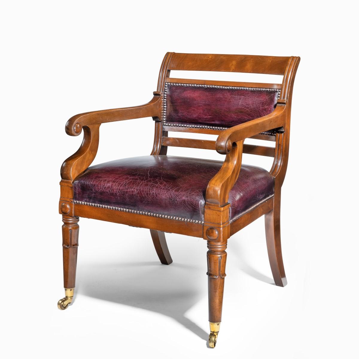 Mahogany Library Chair in the Manner of Henry Holland Reputedly Made for the United Services Club