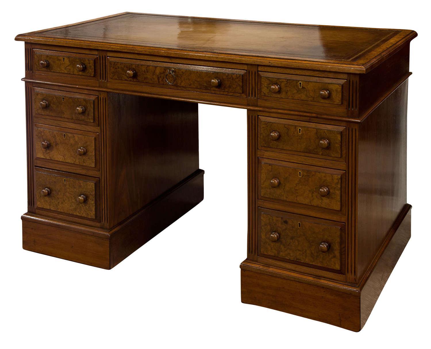 Mahogany Lined, Oak & Burr Walnut Desk (1 of 7)