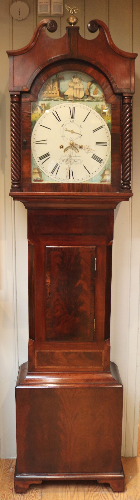 Mahogany Longcase Clock with Rocking Ship, England, 1830 (1 of 1)
