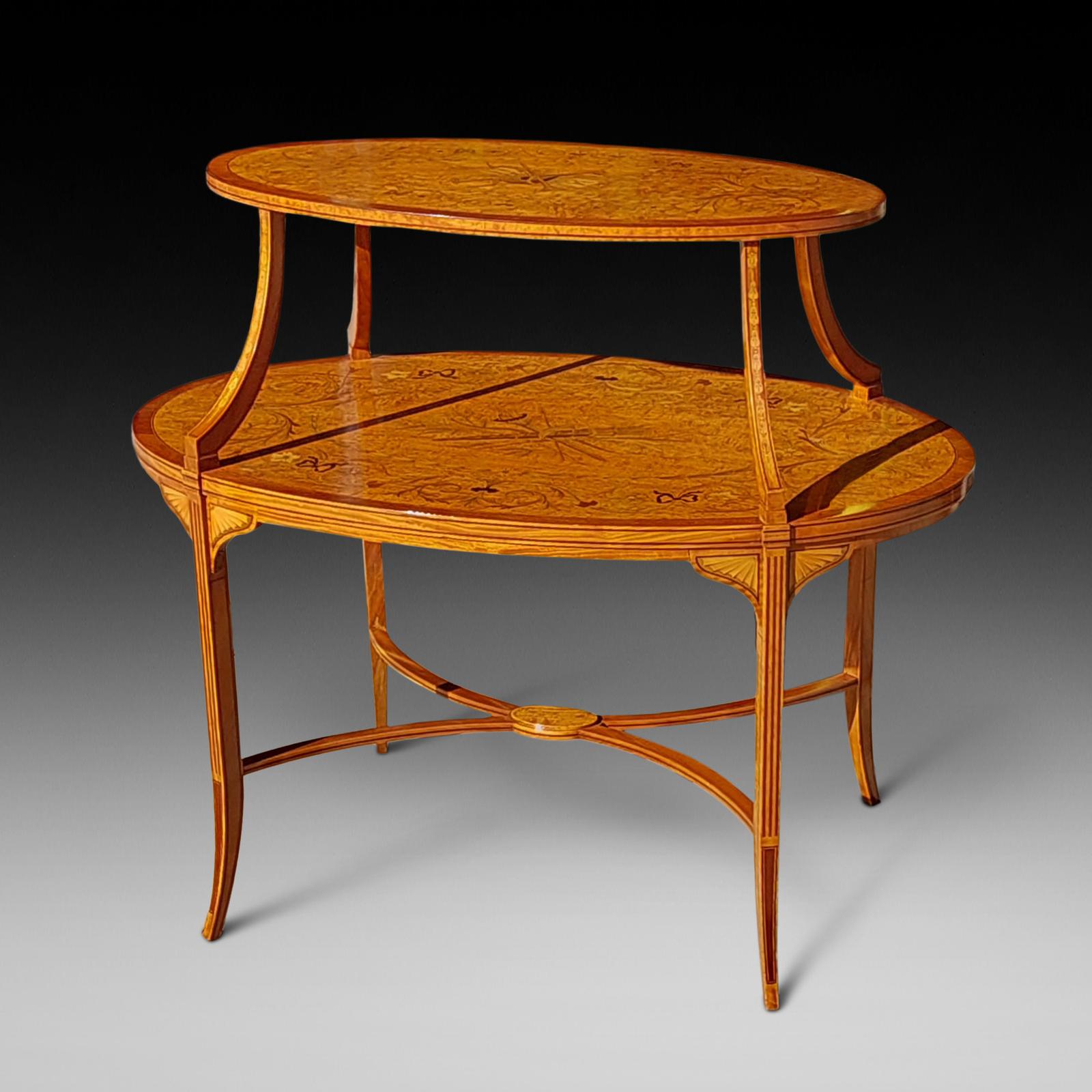 Mahogany & Marquetry Inlaid Two-tier Étagère