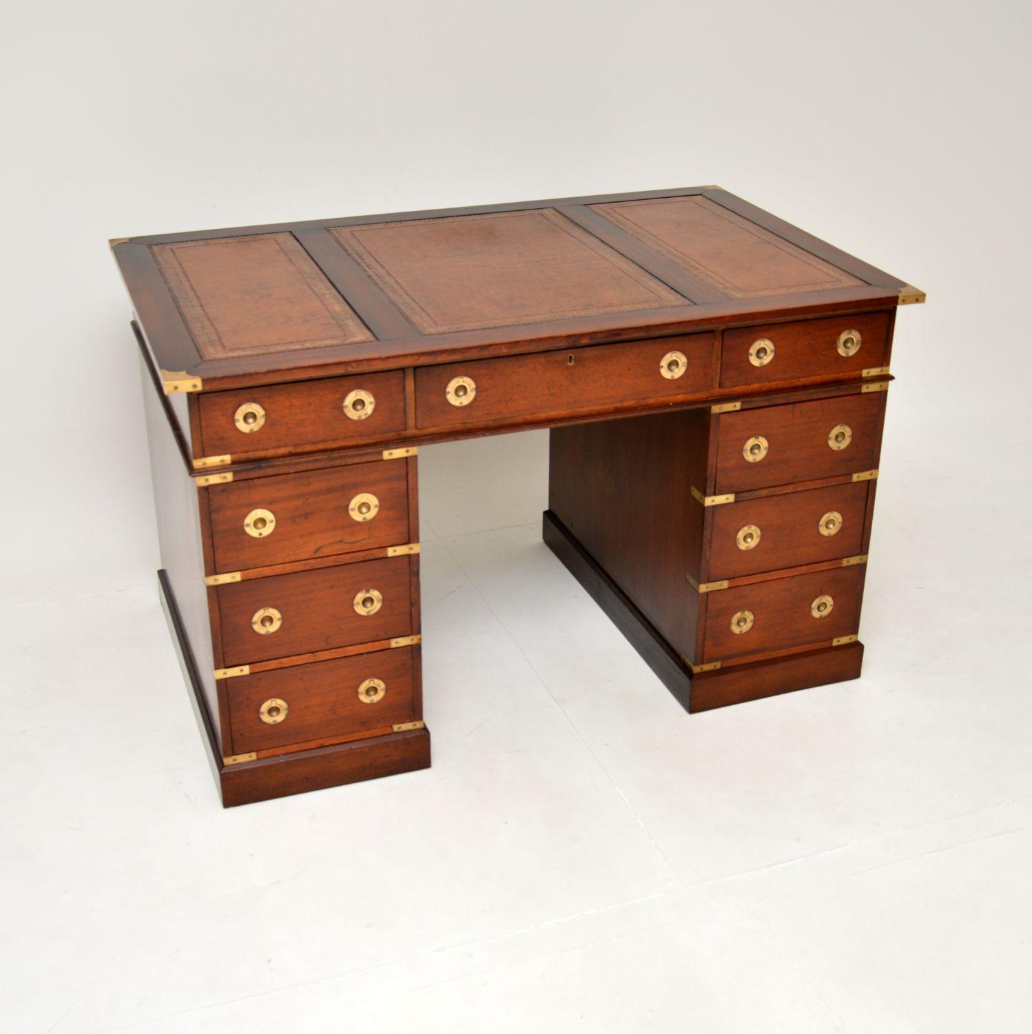 Mahogany Military Campaign Style Pedestal Desk (1 of 12)