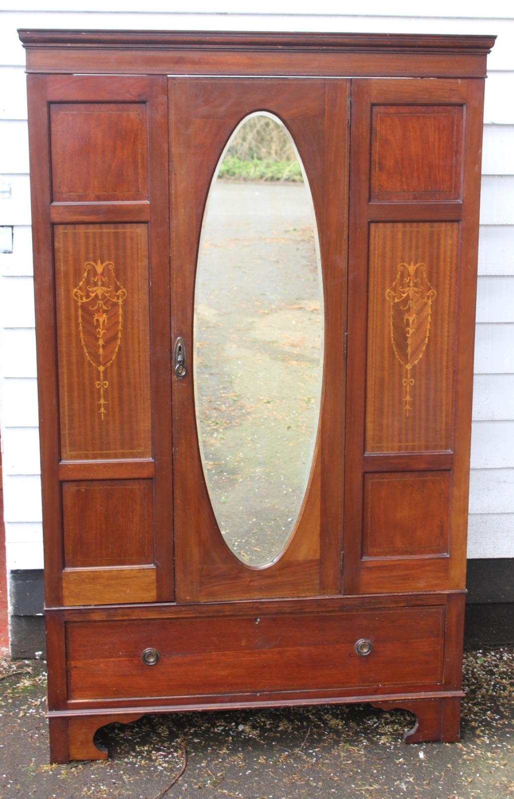 Mahogany Mirrored Wardrobe with Inlay in the Panels c.1910