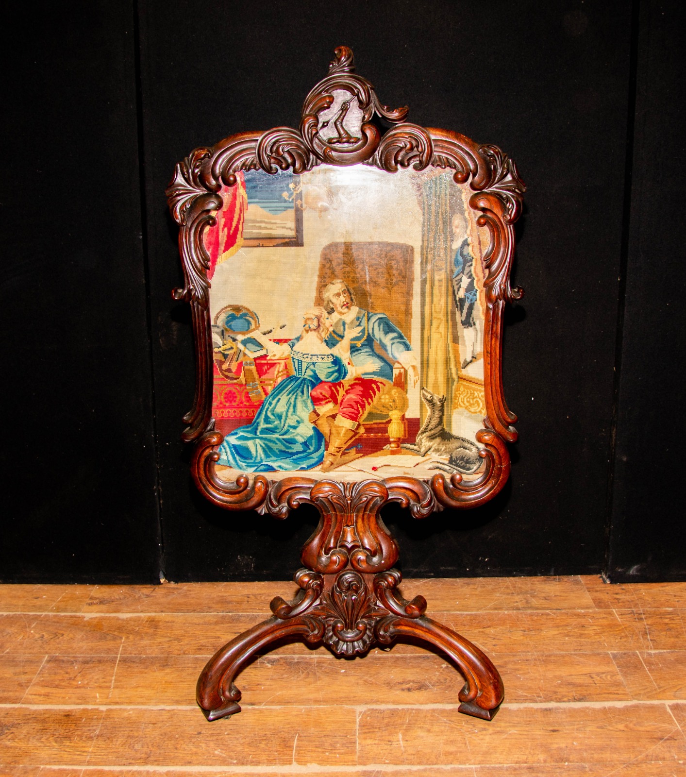 Mahogany & Needlepoint Pole Tapestry Screen c.1860