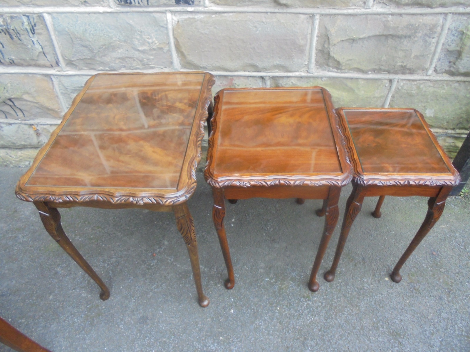 Mahogany Nest 3 Glass Top Coffee Tables c.1920