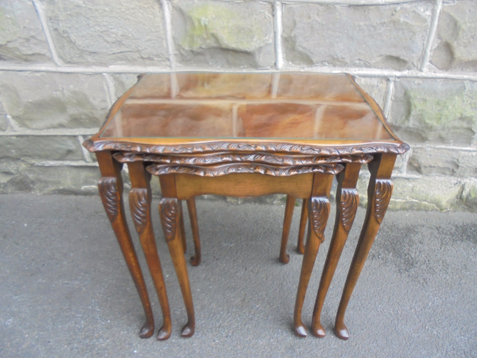 Mahogany Nest 3 Glass Top Coffee Tables c.1920