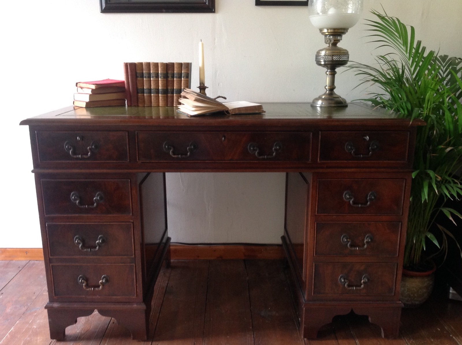Mahogany Pedestal Leather Top Desk