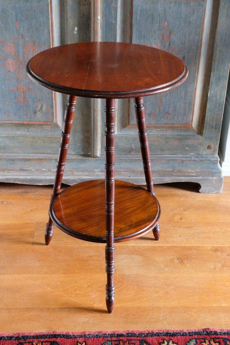 Mahogany Round Table with Turned Legs & Under-Tier Shelf