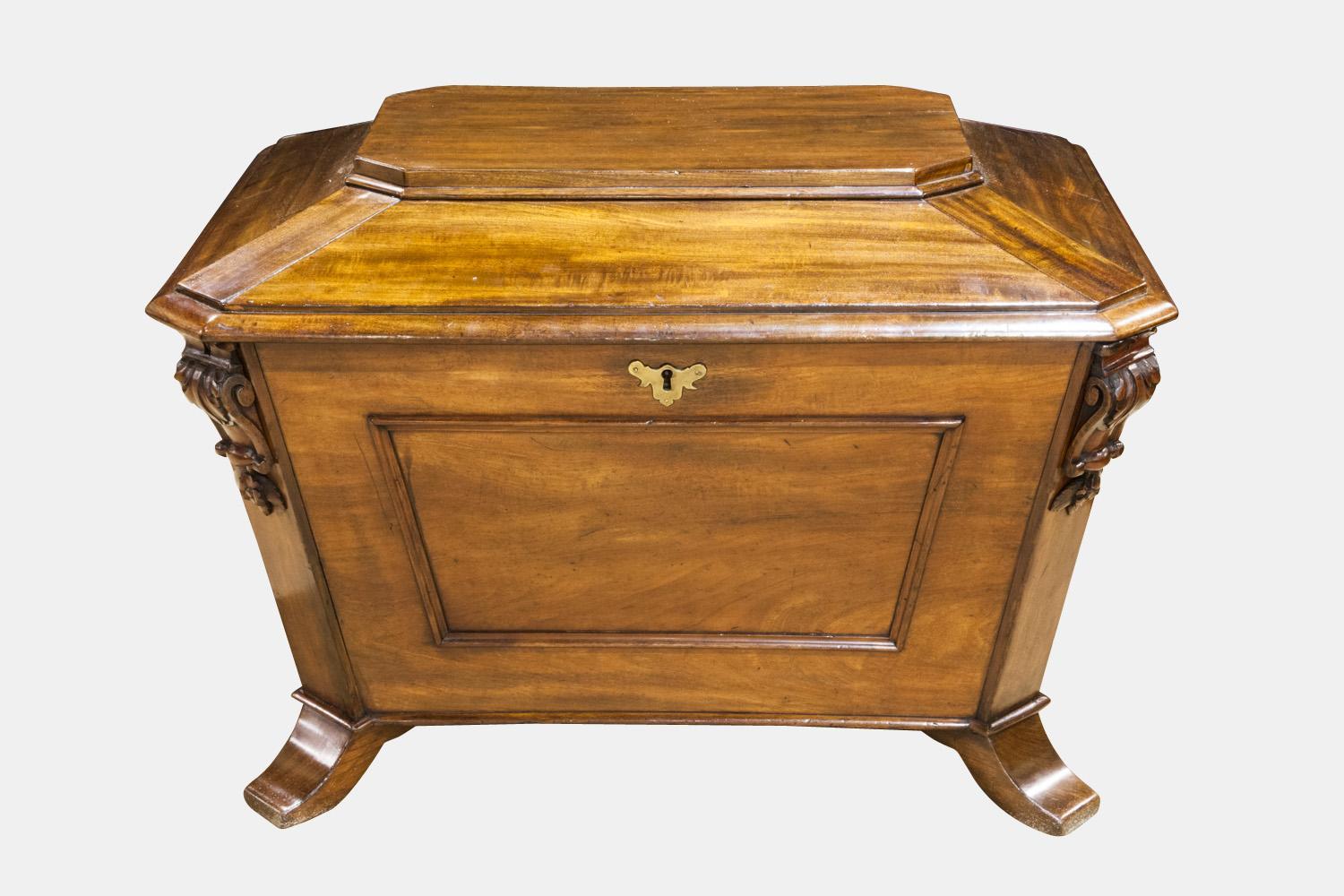 Mahogany Sarcophagus Wine Cooler with Brass Handles
