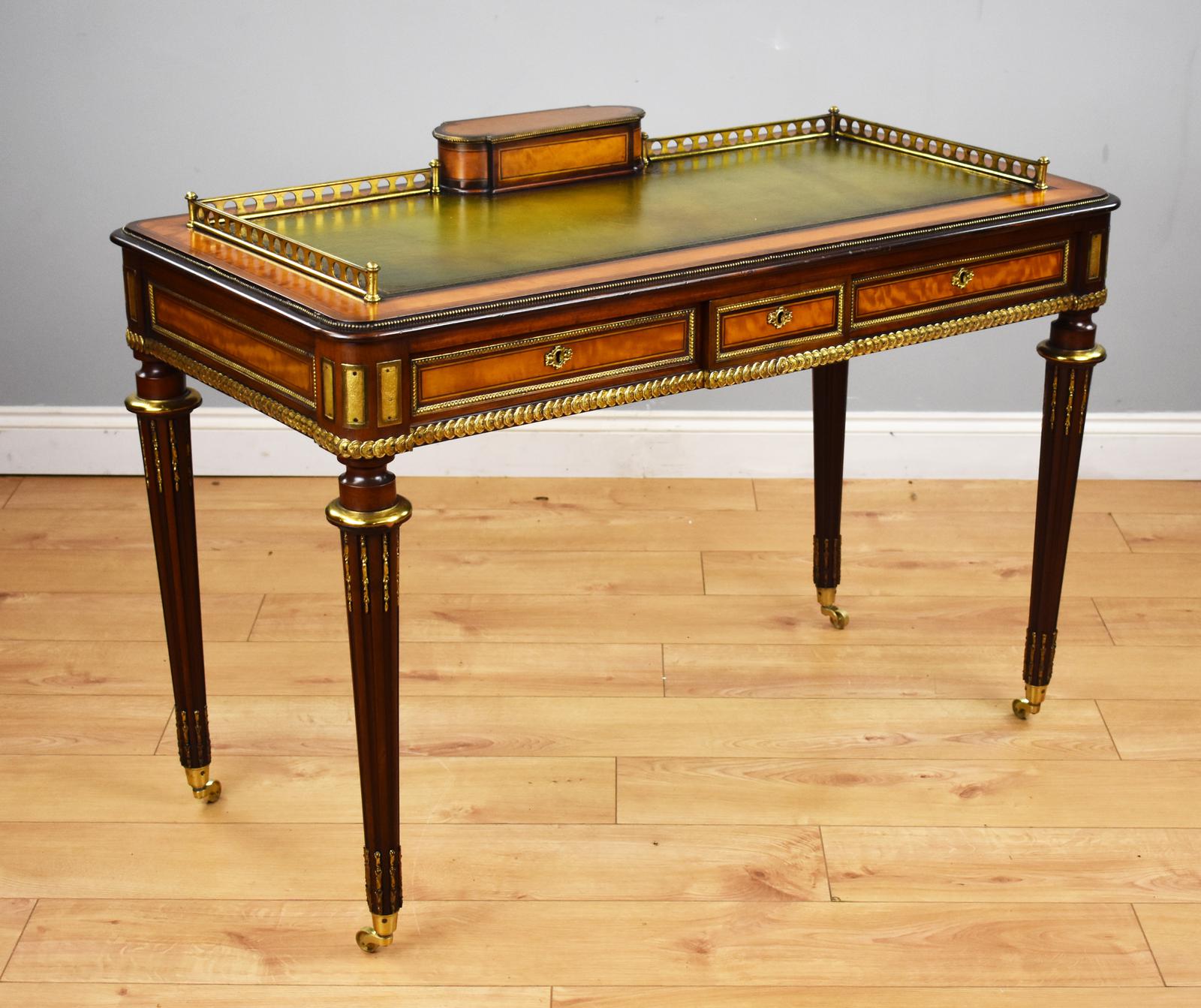 Mahogany & Satinwood Writing Table Stamped Edwards & Roberts