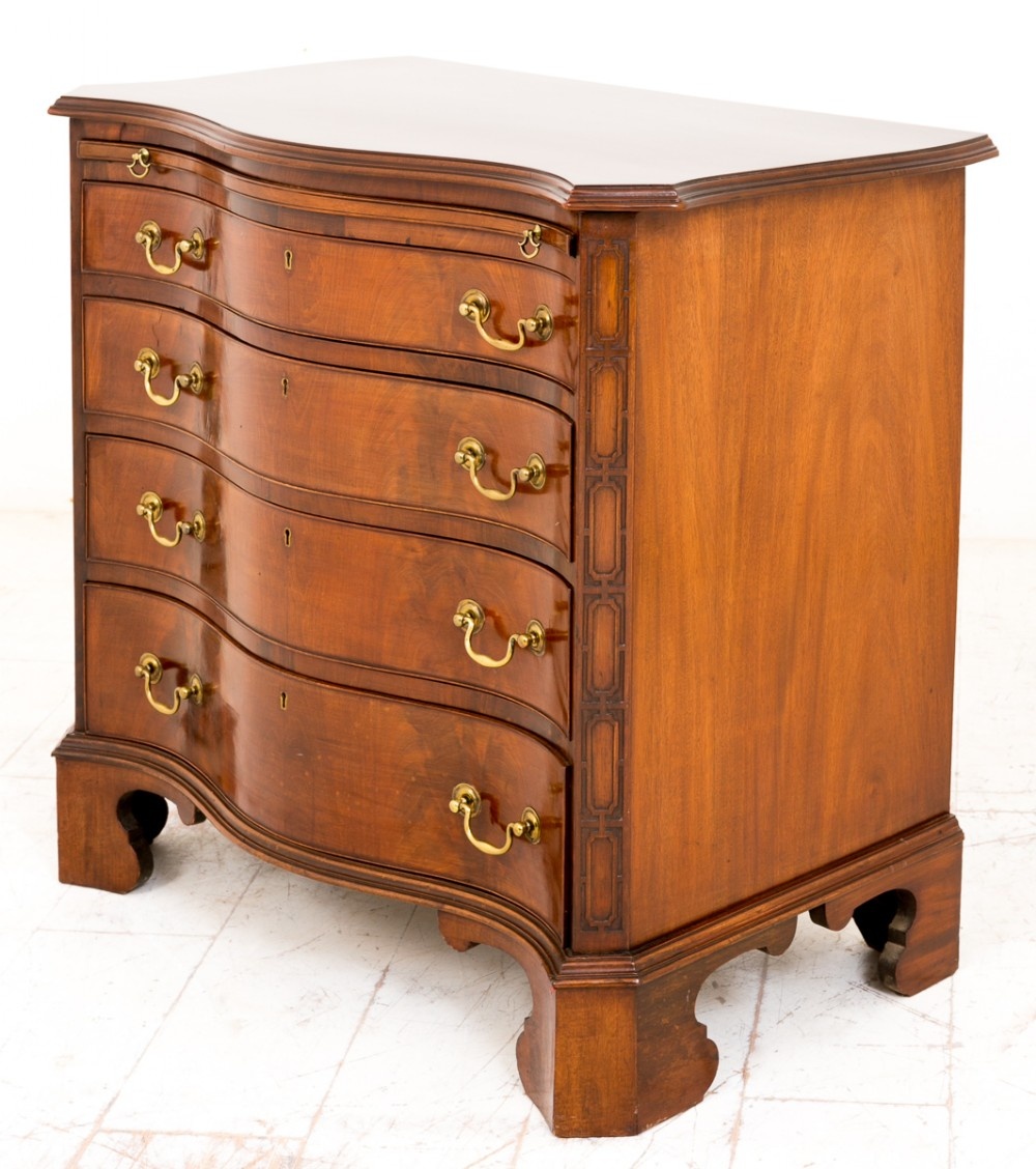 Mahogany Serpentine Georgian Style Bachelors Chest c.1900 (1 of 1)