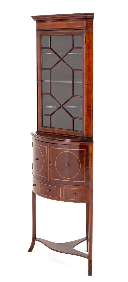 Mahogany Sheraton Revival Bow Corner Cabinet
