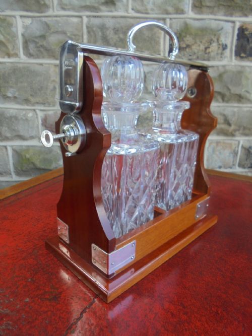 Mahogany & Silver Plated 2 Bottle Tantalus c.1920