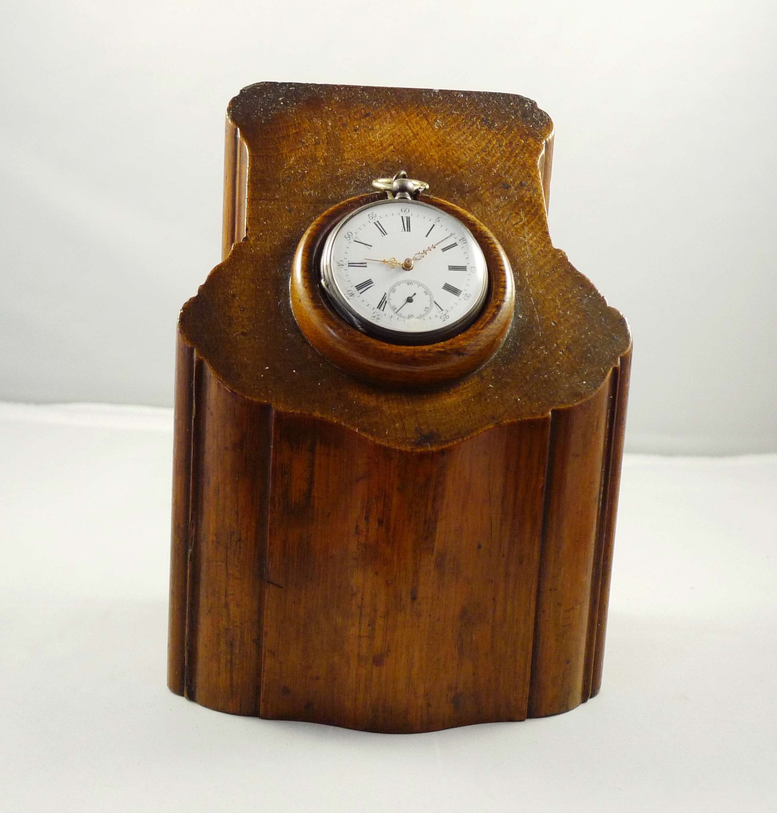 Mahogany Wooden Watch Stand Custom Made for this Silver Pocket Watch - Swiss Made 1880