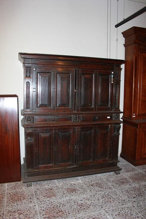 Majestic Italian Cupboard from the 1500s Renaissance in Walnut Wood with Bambocci