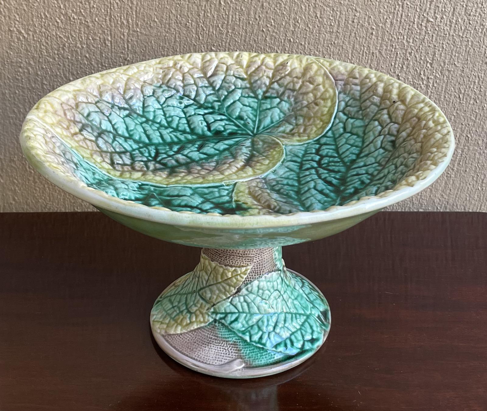 This Majolica Begonia Leaf Comport Bowl is located in Isle of Man