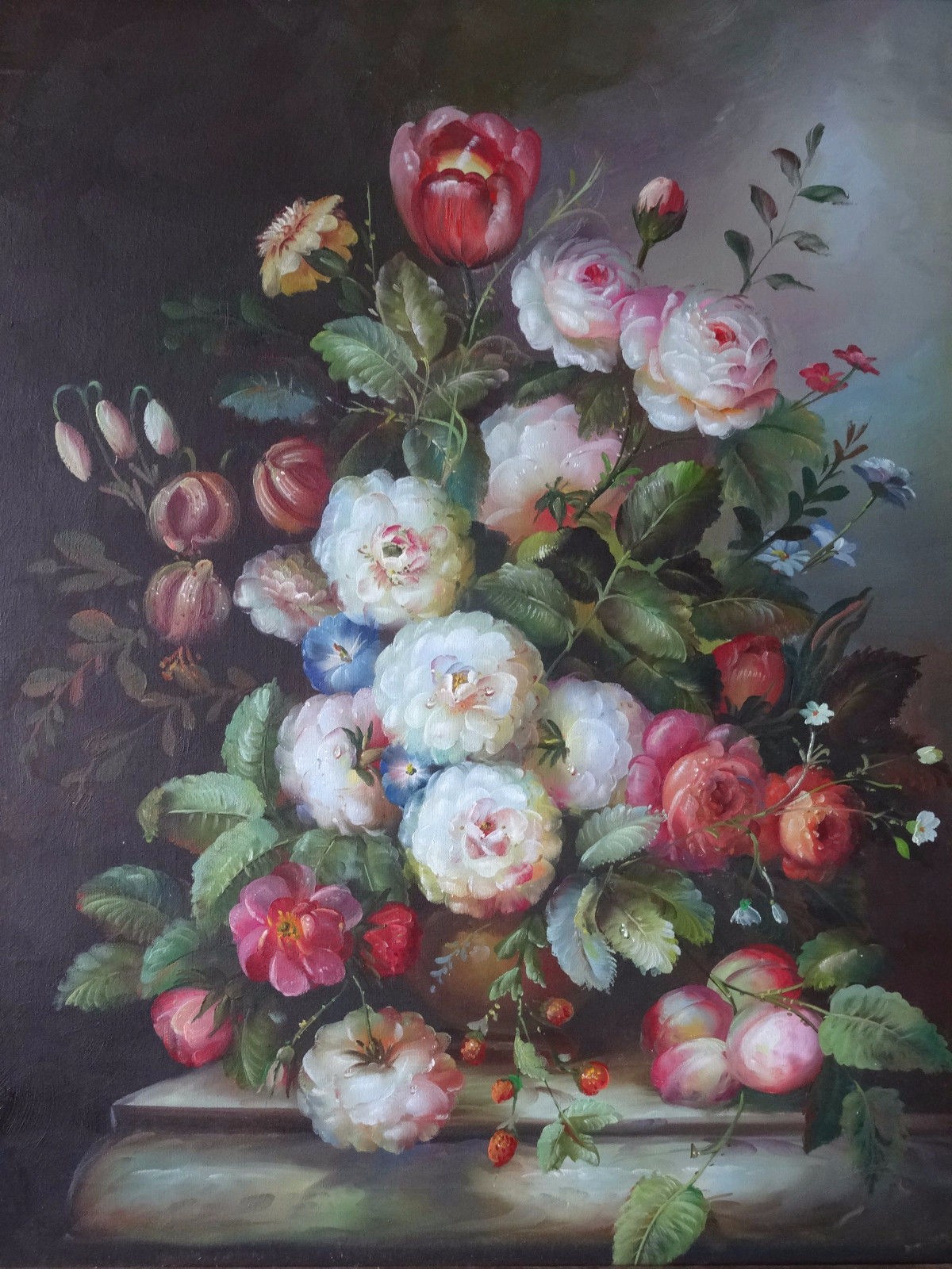 MANNER OF Jan Van Huysum 18thc Style Dutch Still Life Floral Study Oil Painting