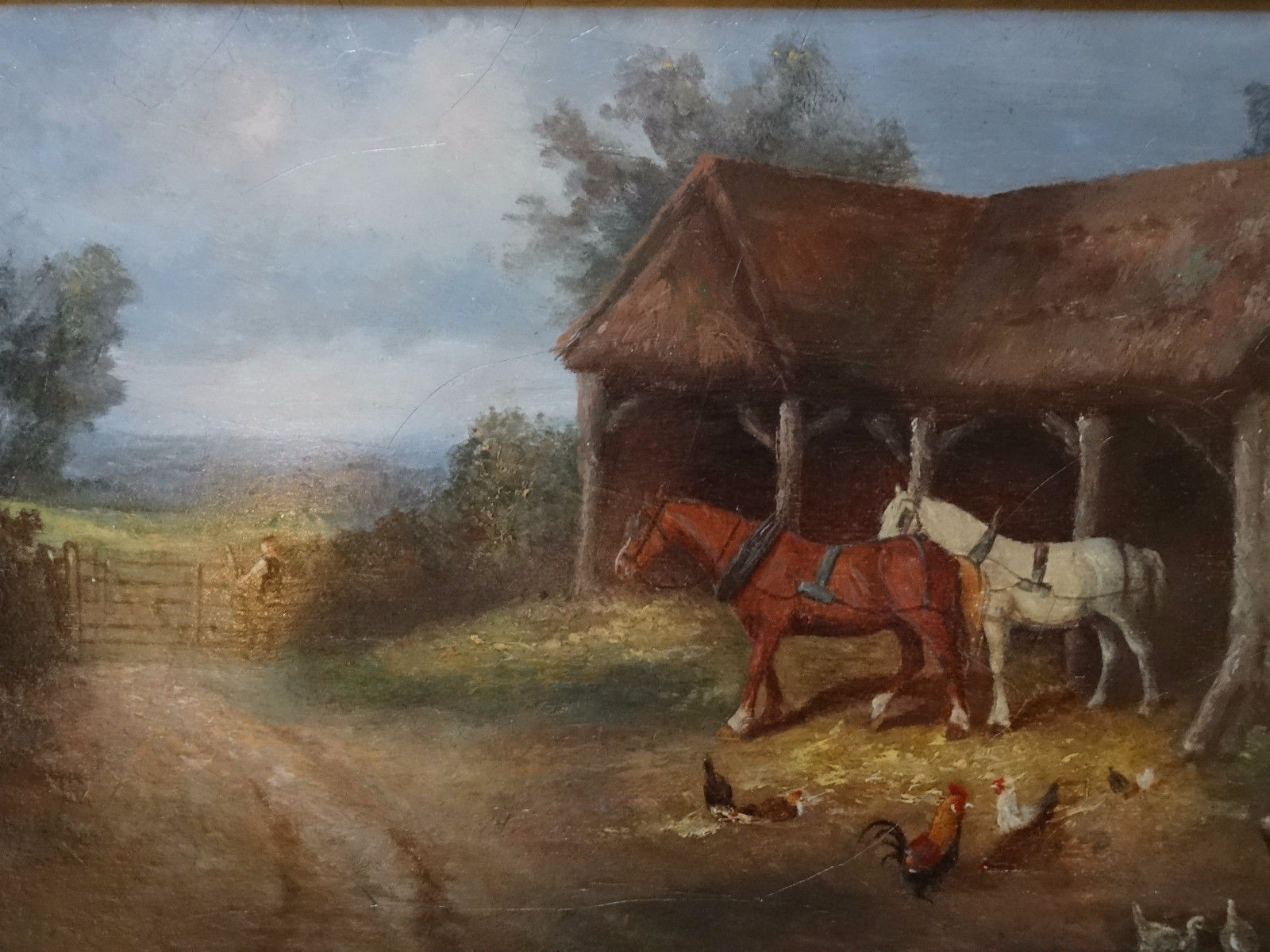 Manner of: William Shayer (1787–1879) Country Farmyard & Horses Oil Painting