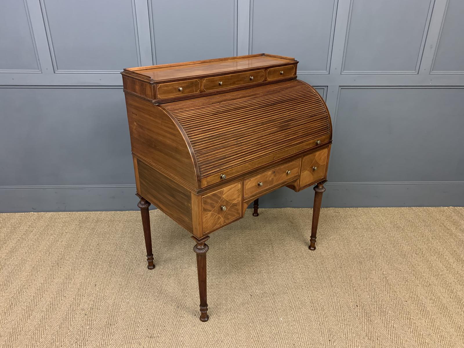 Maple and Co. Inlaid Mahogany Tambour Cylinder Desk