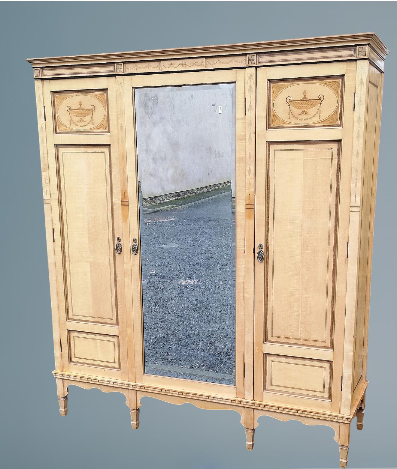 Maple & Marquetry Inlaid Triple Door Wardrobe