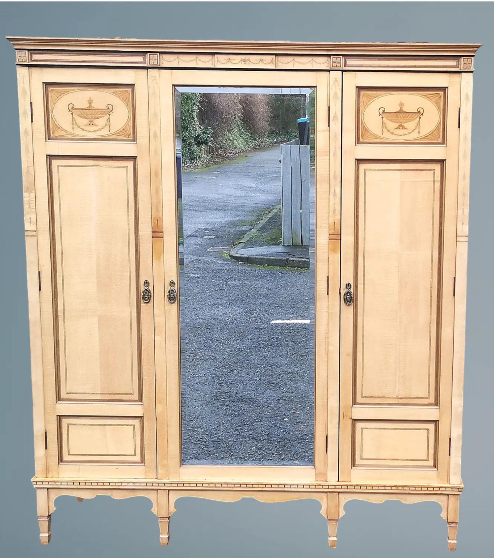 Maple & Marquetry Inlaid Triple Door Wardrobe
