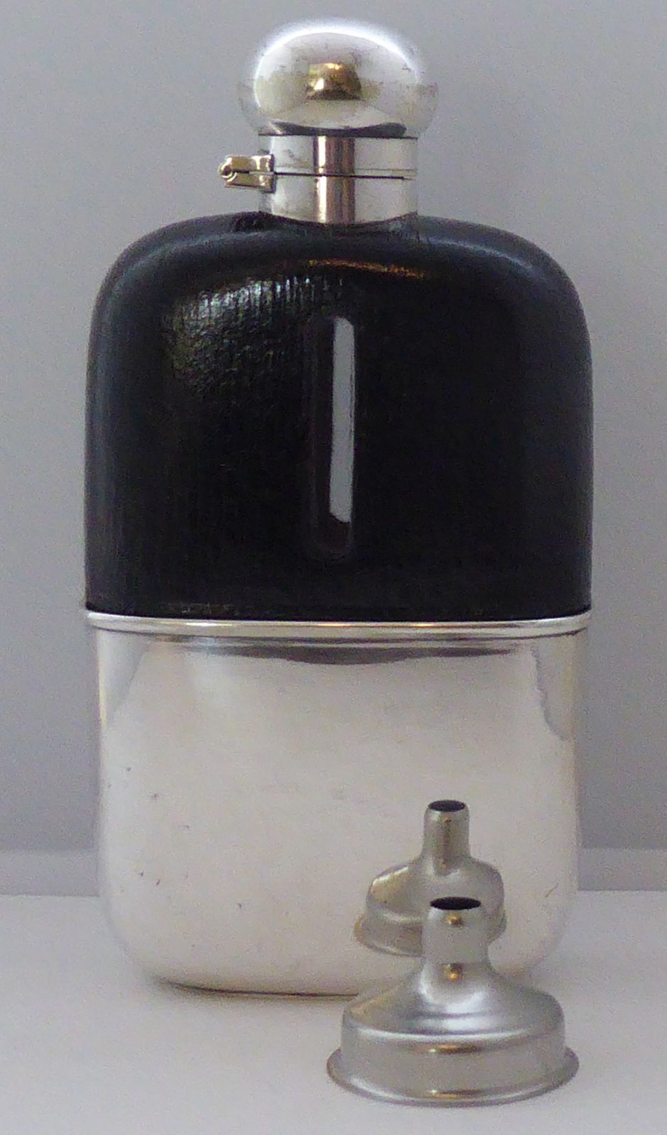 Mappin Brothers Silver Plated Kid Leather Bound Glass Hip Flask c.1890