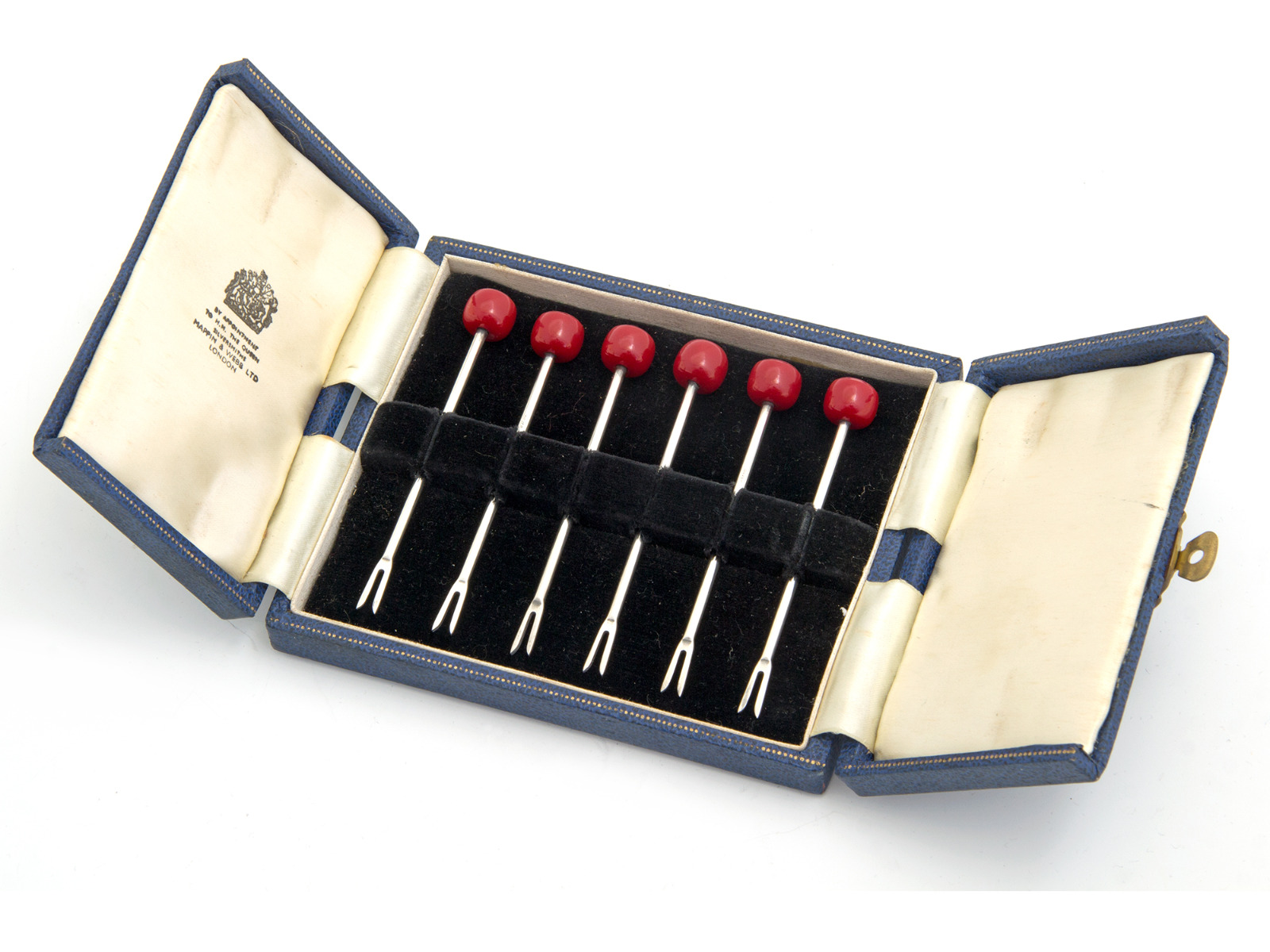 Mappin & Webb Boxed Set of Six Silver Cocktail Picks (1 of 1)