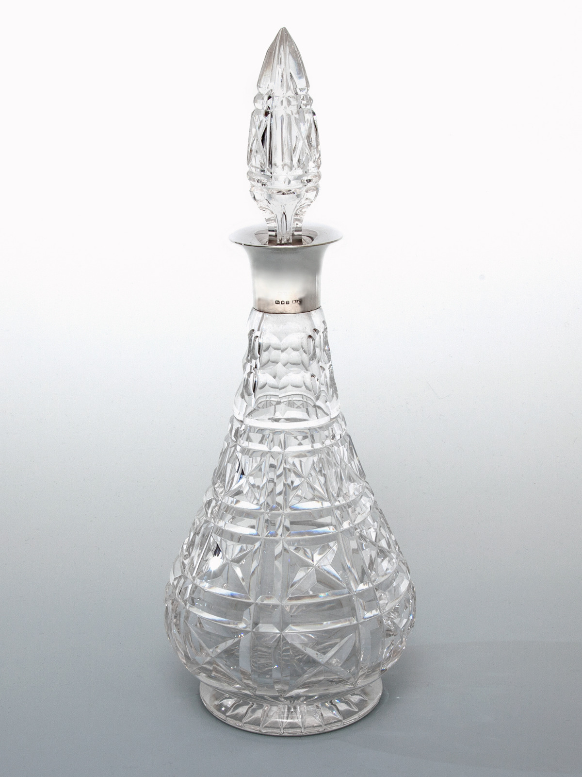 Mappin & Webb Silver Collar Decanter with a Pear Shaped Cut Glass Body