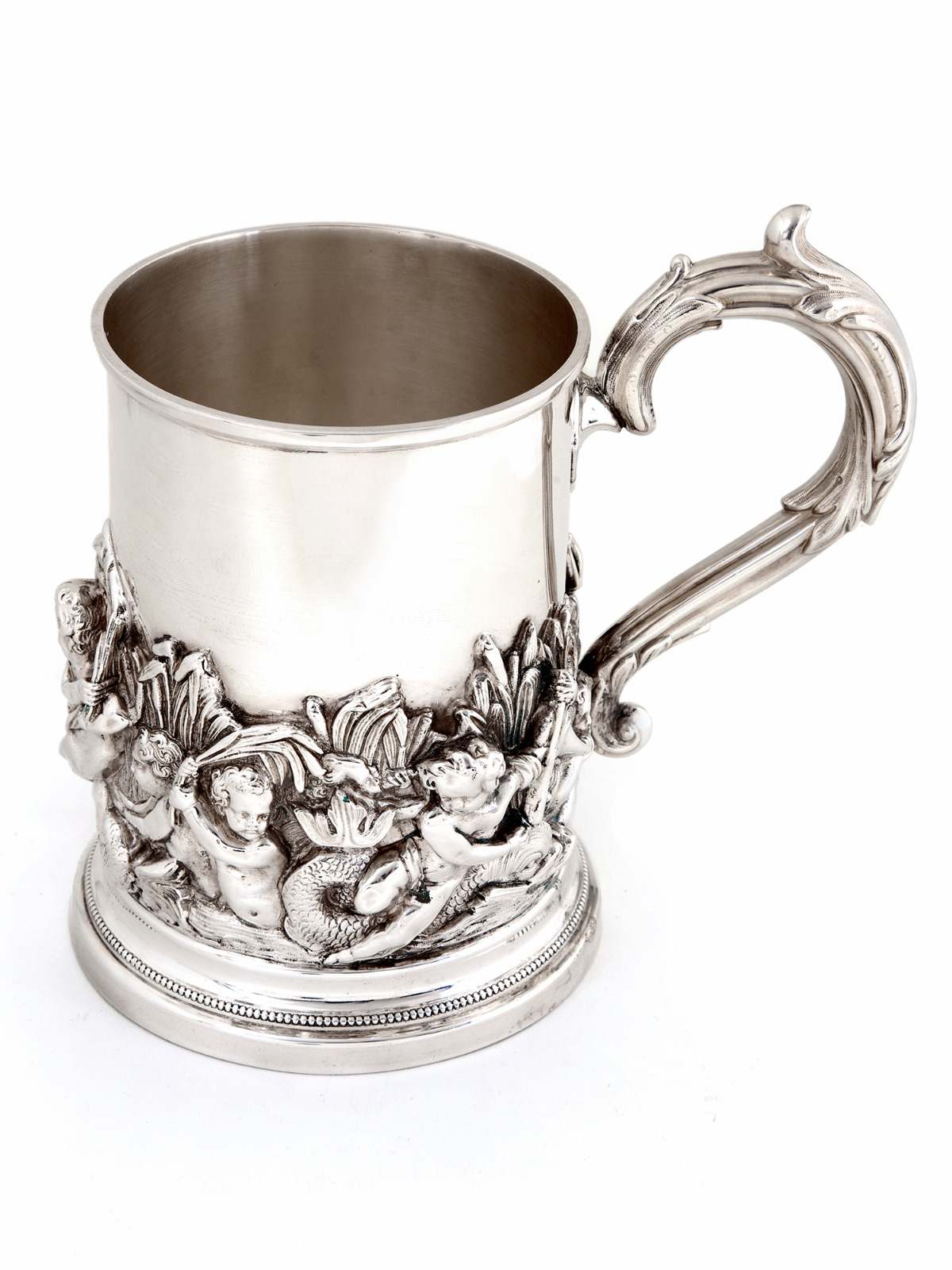Mappin & Webb Silver Plated Two Pint Tankard Decorated with Cherubs