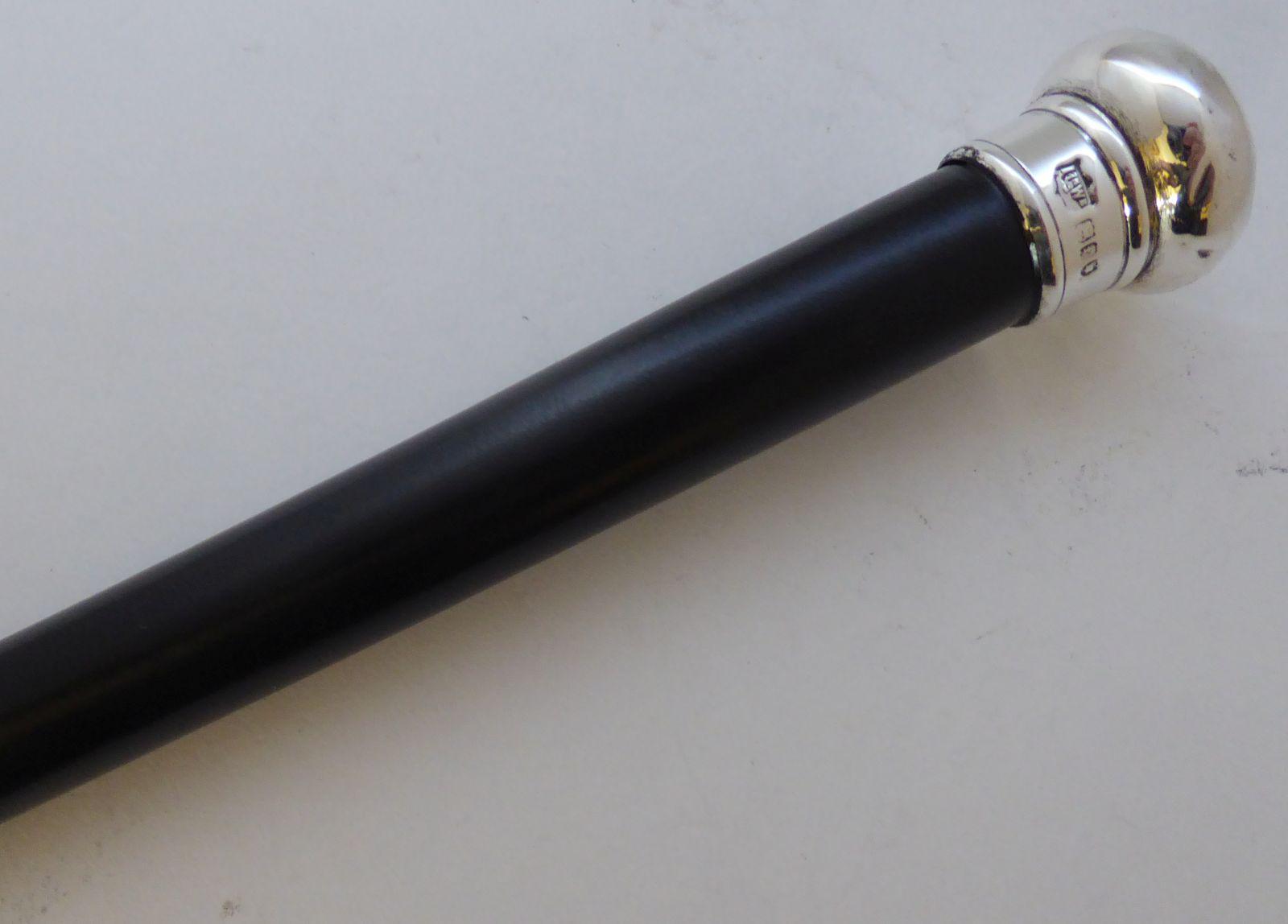 Mappin & Webb Walking Stick Cane 1901 Solid Silver Pommel Ebonised Shaft