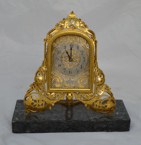 Marble Base Gilt Fretwork Mantel / Desk Clock