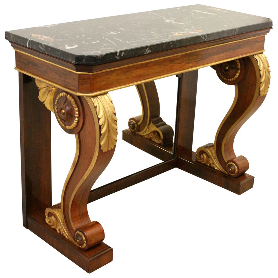 Marble Top Rosewood & Gilded Console Table c.1920